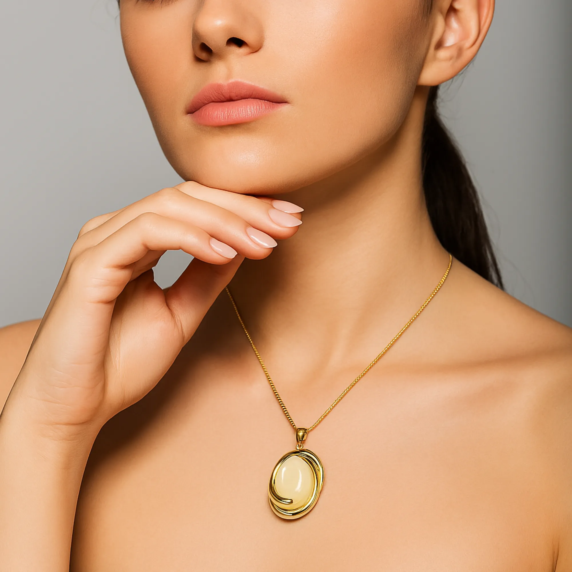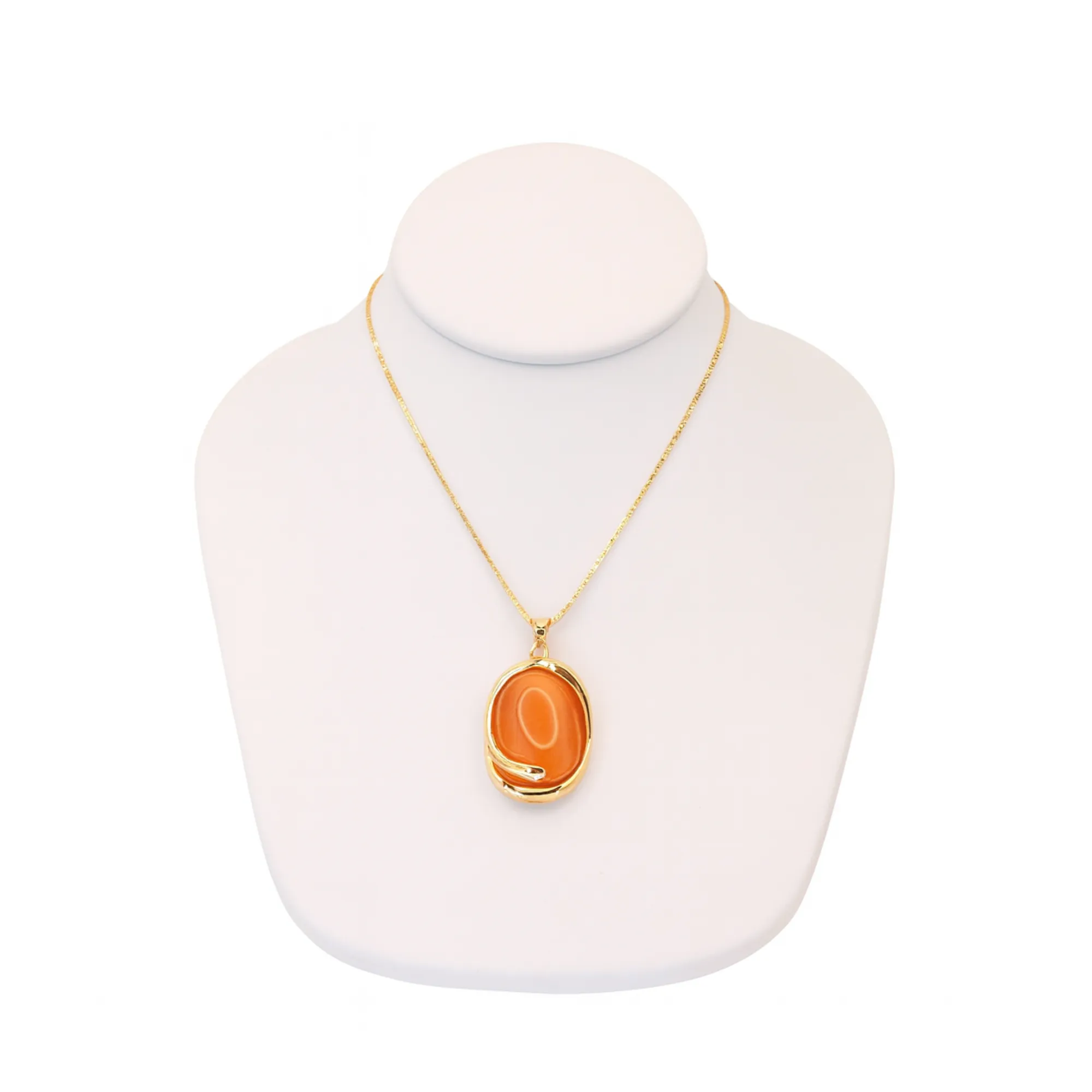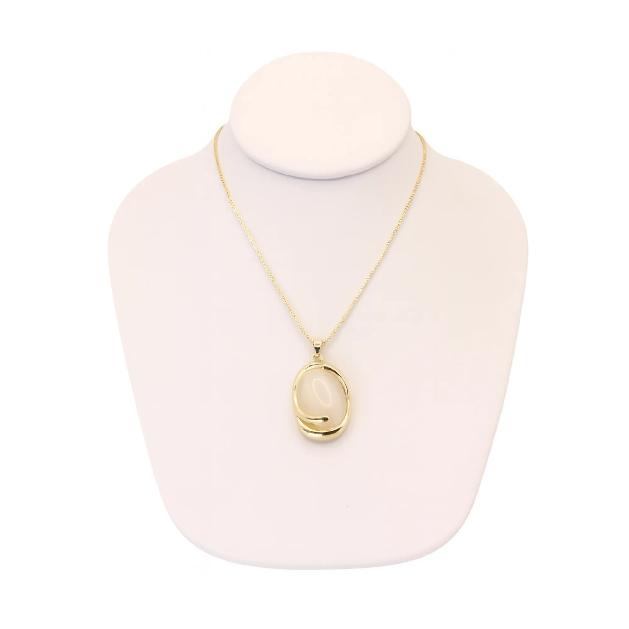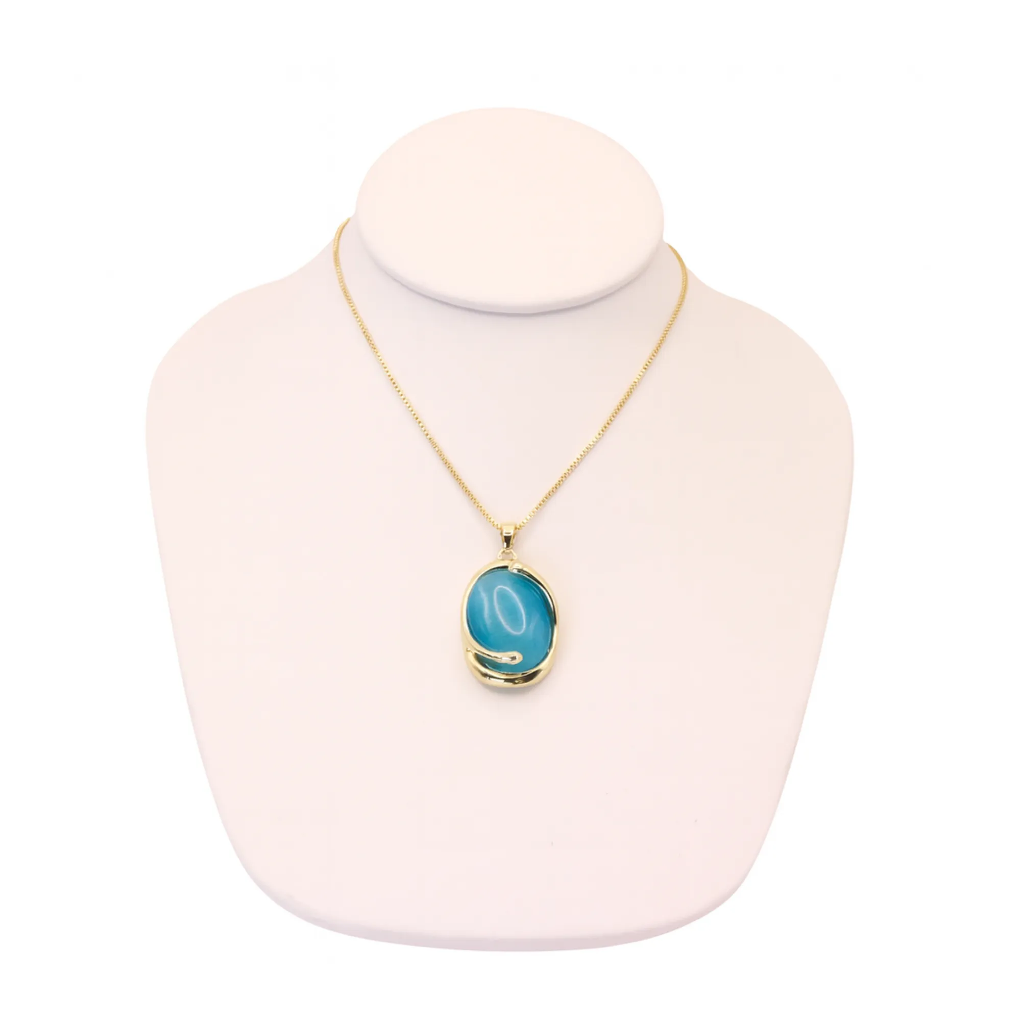 This gemstone necklace is gold-plated with a large round stone, perfect for women’s fashion jewelry. It features a beautiful gemstone and a large round design. The sizes are 18” + extension, making it versatile for various occasions. Whether dressing up for a special event or adding elegance to your everyday look, this necklace is a great choice.